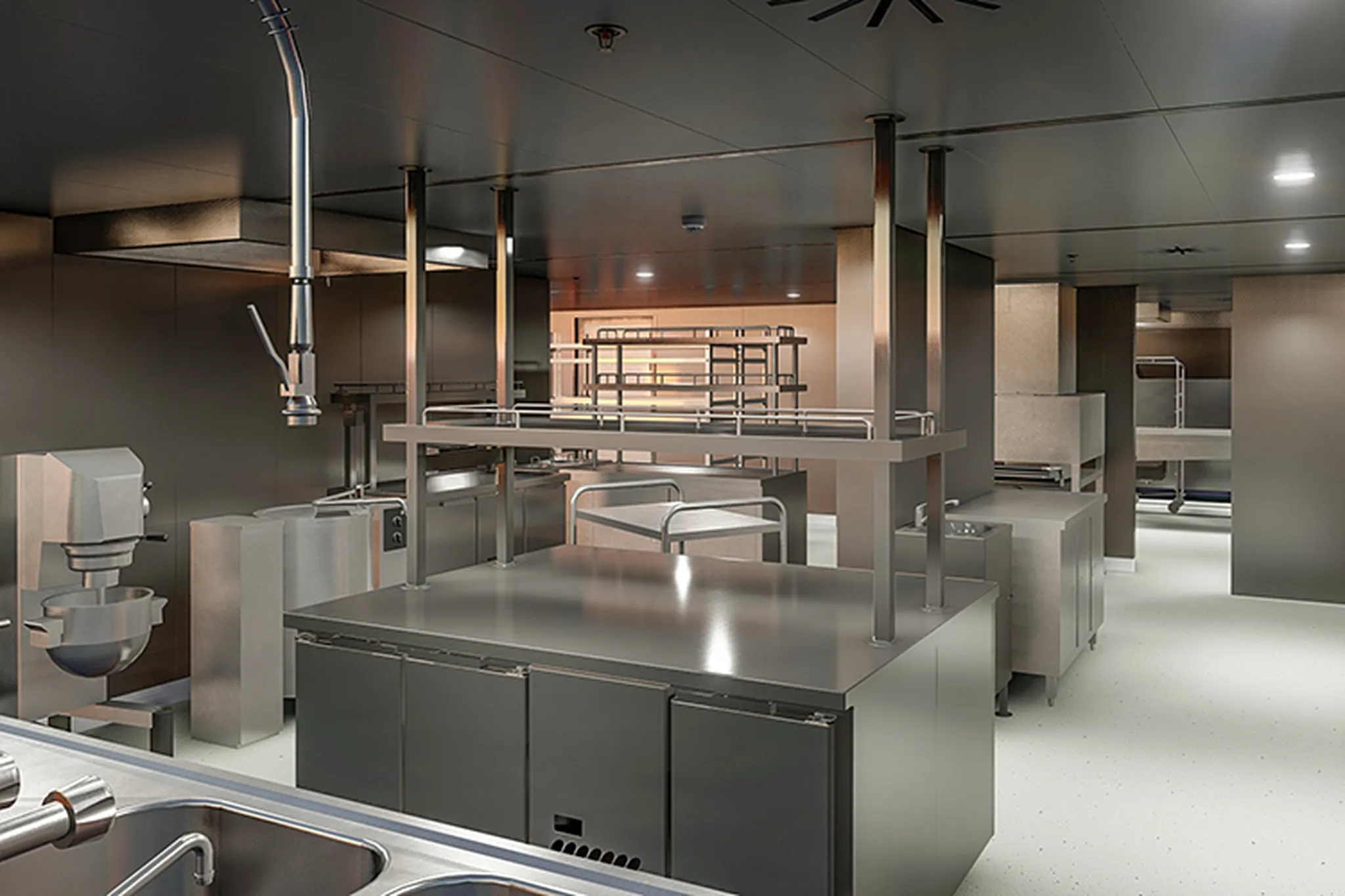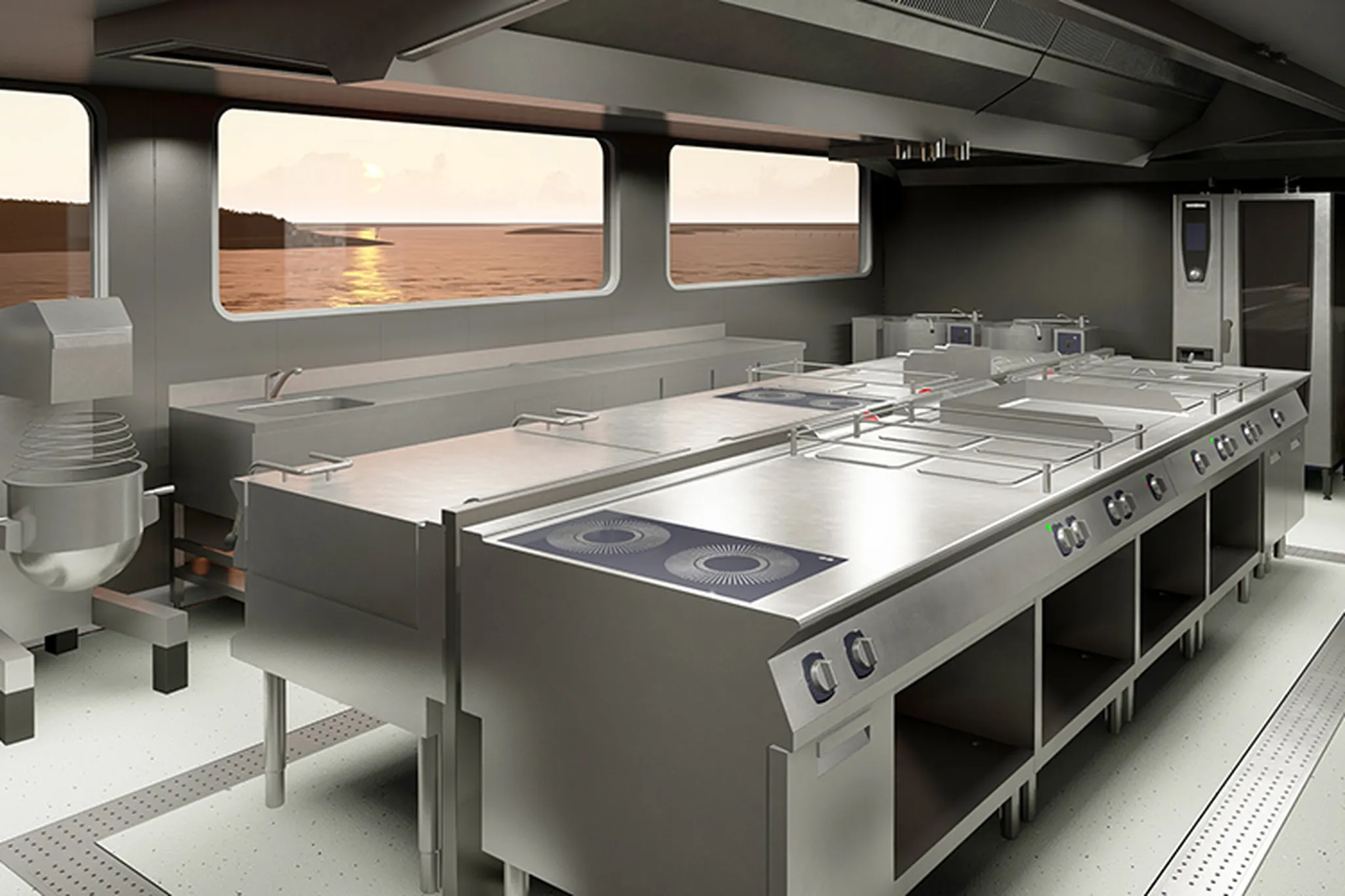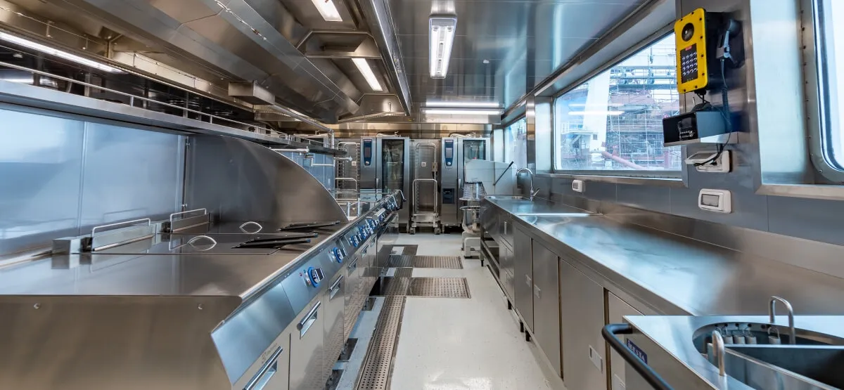 The ships are equipped with Loipart equipment in galleys, bars, pantries, buffets, and other public areas.